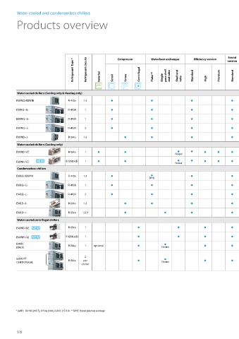 Refrigerant Type * Refrigerant circuits Inverter Centrifugal Plate ** Single pass shell and tube Shell and Standard Premium Standard